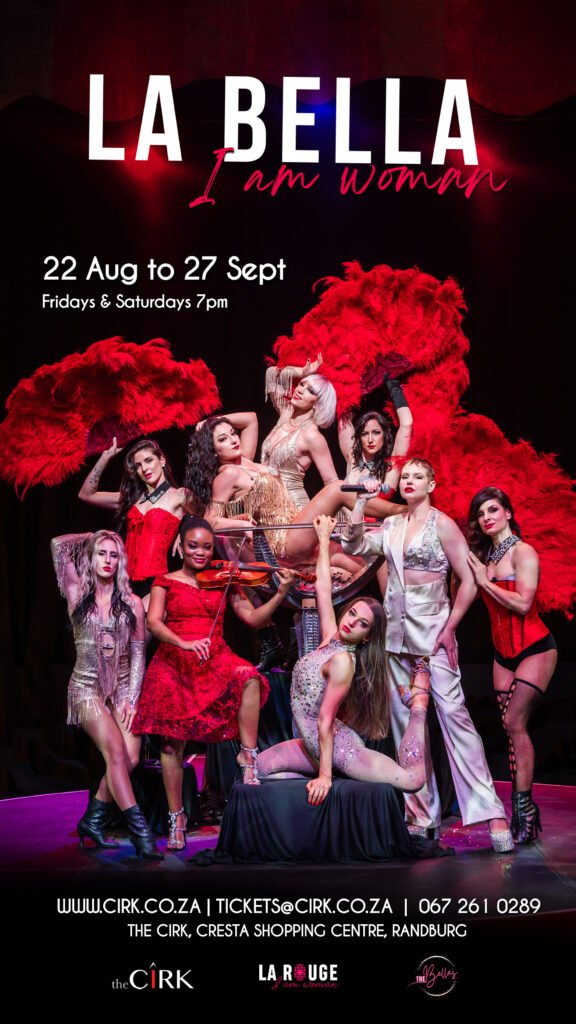 La Bella, a collaboration between The Cirk and La Rouge, will be on stage at The Cirk at Cresta Shopping Centre, Randburg from 22 August – 27 September. This eye-catching and captivating show invites you to partake in an extraordinary celebration of femininity, showcasing the beauty and power of women through tantalising burlesque and aerial performances.